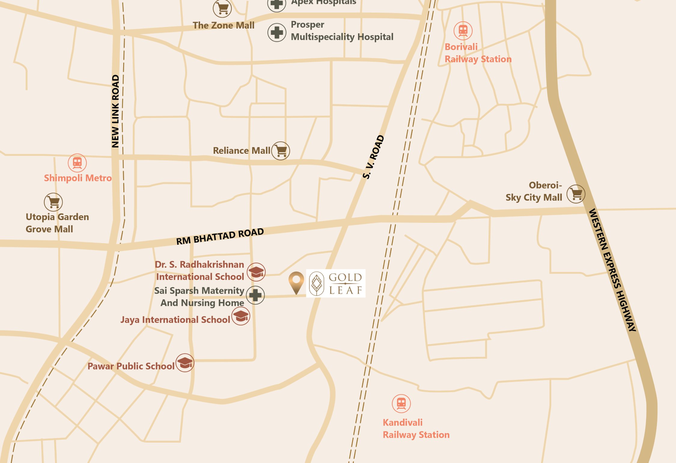 Shelaji Group presents Gold Leaf, thoughtfully designed 2, 3 BHK & Jodi homes in a contemporary high-rise tower at Sai Baba Nagar, Borivali (West). One of Borivali's fastest growing, most wellconnected and culturally enriched locations. With Shimpoli Metro Station, Borivali Railway Station and major road networks nearby, daily travel becomes effortlessly smooth. It's strong social infrastructure, top schools, markets, and vibrant community life provide convenience at every step. Moreover, the neighbourhood's rich cultural vibes-Jain Mandir, Sai Baba Temple and Gurudwara adds warmth and community charm to your everyday life.
